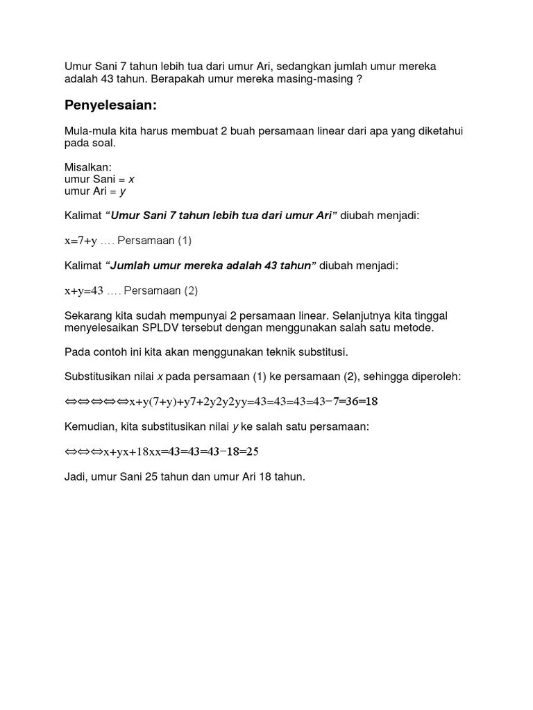 Contoh soal dan pembahasan tentang perbandingan sd, contoh soal dan perbandingan tentang skala, contoh soal dan pembahasan tentang jarak sebenarnya, contoh soal dan pembahasan mencari jarak pada peta. Dua tahun lalu, dua kali usia ani ditambah tiga kali usia budi adalah 49 tahun, akan diperoleh persamaan sebagai berikut: Dimana perbandingan matematika juga dipakai dalam banyak ilmu pengetahuan lainnya. Five years old, karena sebelumnya disebutkan umur 4 tahun dan sekarang lebih tua. Contoh soal spltv mengenai umur.