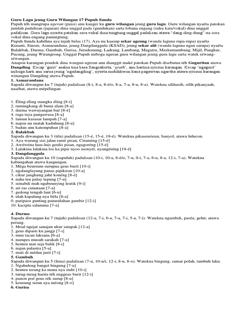 untuk "Guru Lagu Jeung Guru Wilangan Pupuh Di Luhur Nyaeta - Guru Lagu Jeung Guru Wilangan Pupuh Durma Nyaeta / Guru lagu jeung guru wilangan padalisan ka tilu pupuh kinanti nya èta."