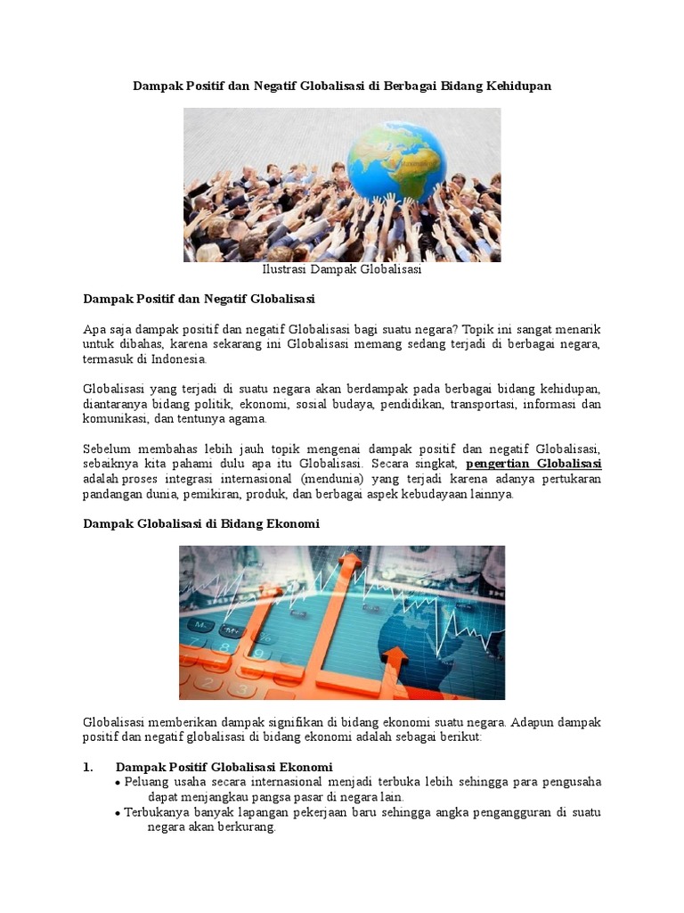 untuk "Upaya Bangsa Indonesia Dalam Menanggulangi Dampak Globalisasi Di Bidang Ekonomi Adalah / Dampak Positif Negatif Globalisasi Di Berbagai Bidang Tugas Sekolah Ku - Menyiapkan sdm yang kompeten, kompetitif dan memiliki kemampuan yang baik dalam menghadapi kompetisi globalisasi."