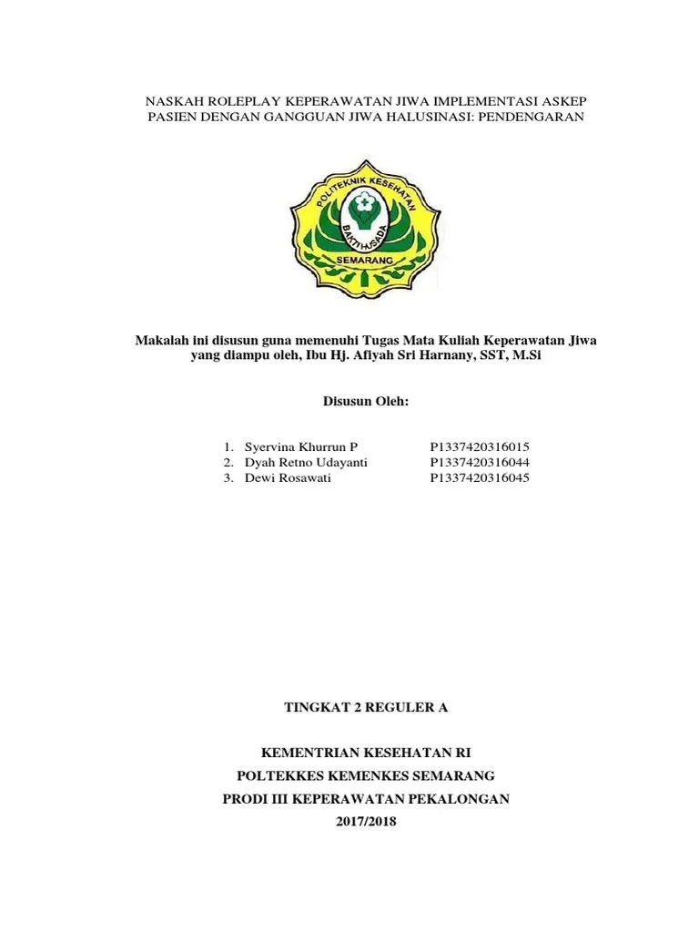 Asuhan keperawatan klien dengan gangguan persepsi sensori halusinasi pendengaran pada penderita skizofrenia di rumah sakit jiwa menur surabaya. Mengalami gangguan jiwa sudah 5 tahun, dan sampai sekarang. Pada klien dengan gangguan sensori persepsi: Gangguan persepsi sensori (halusinasi pendengaran) di. Dengan demikian, asuhan keperawatan jiwa generalis dengan diagnosis gangguan sensori persepsi: